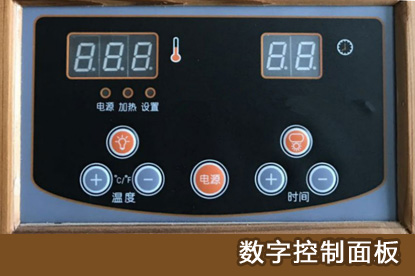 數字控制面板:數字傳感器,LED數碼顯示,智能恒溫控制,使用方便,節能省電。時間調節為0-60分鐘,溫度調節為18-60℃。
